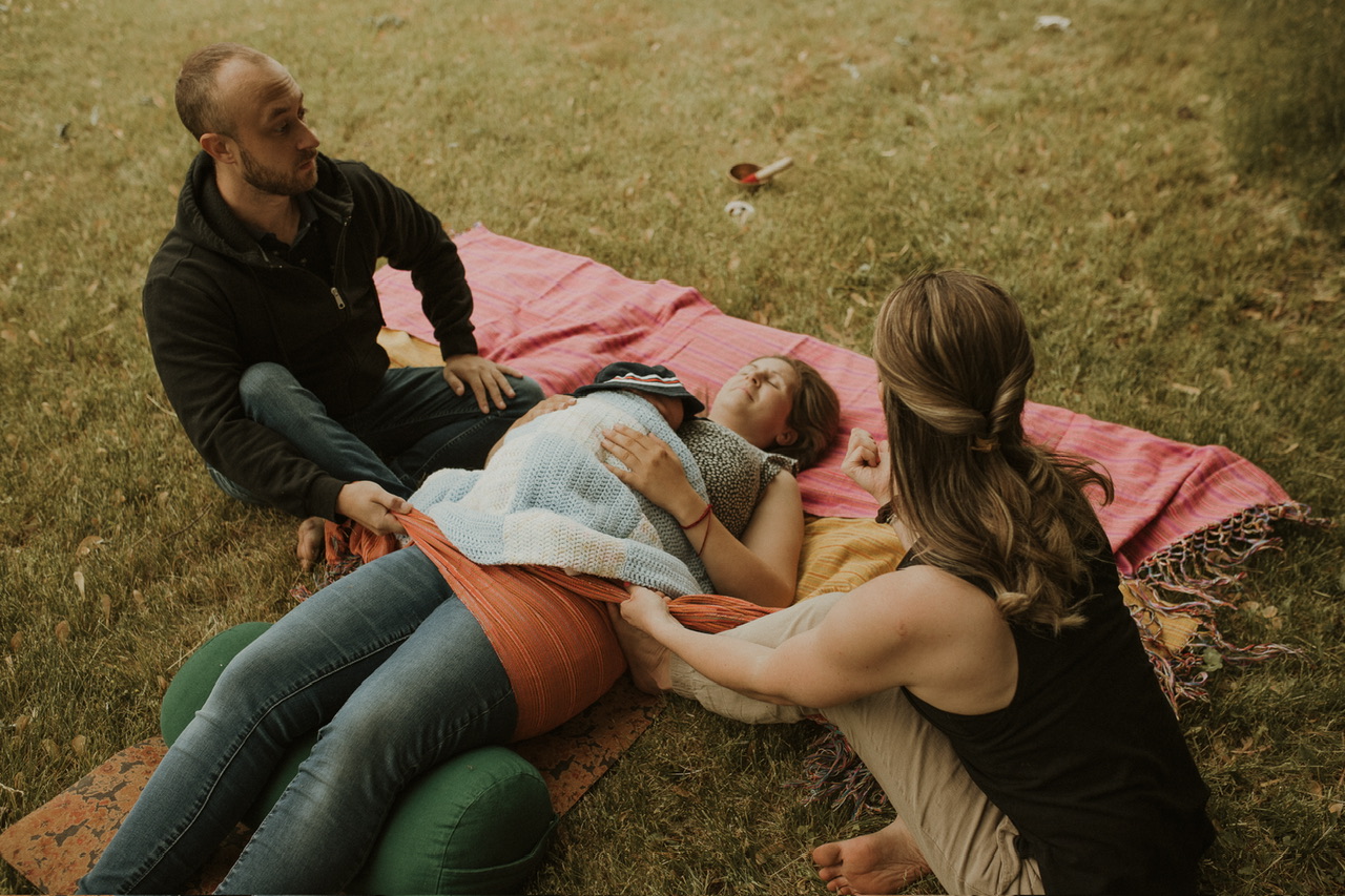 Technique utilisée en postnatal précoce pour réduire les douleurs du dos, les douleurs ligamentaires et pour fermer les os du bassin. Le soin postnatal de serrage du bassin inclut un moment de détente pour la mère.